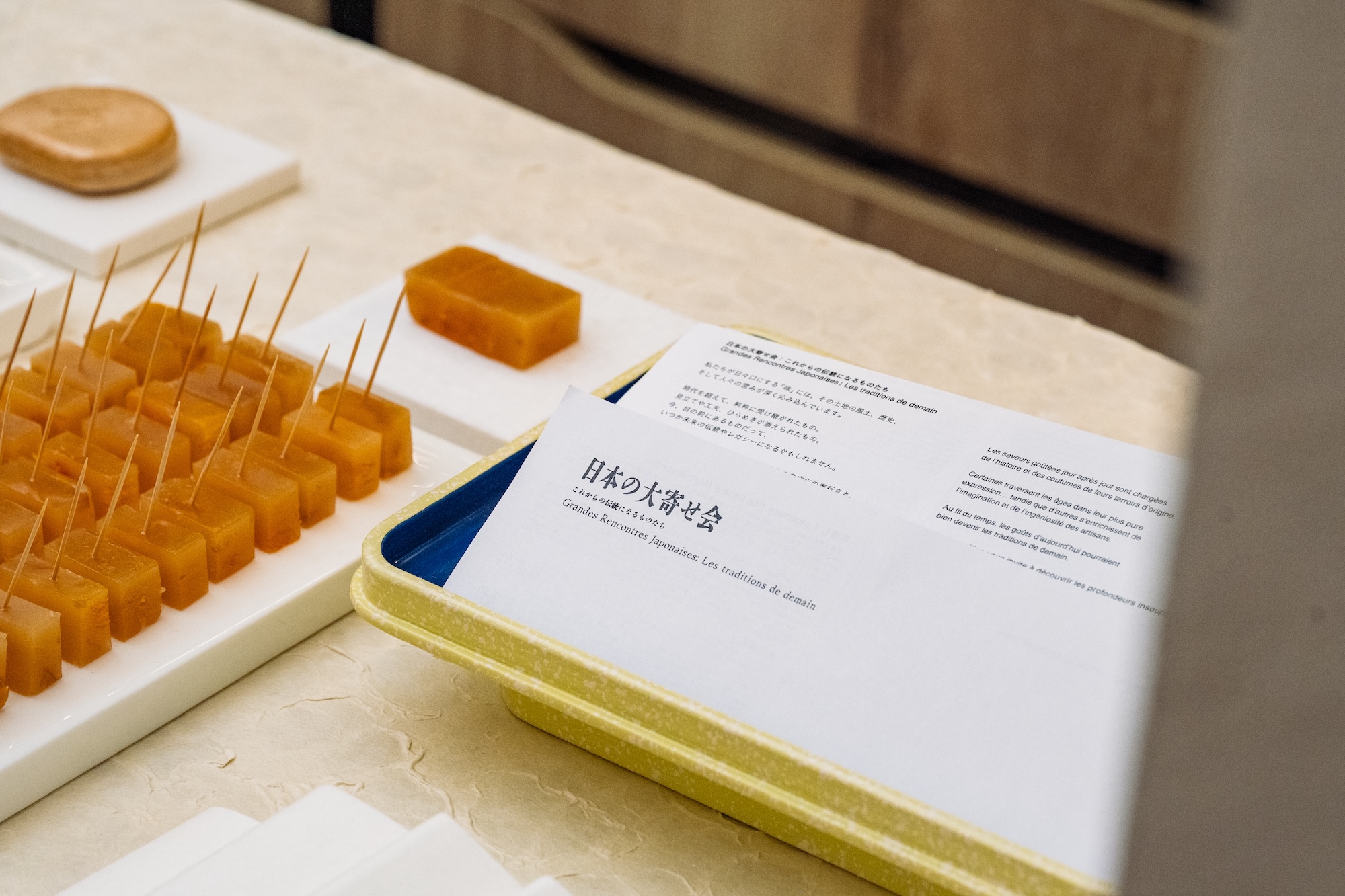 2025年9月12日(金)にフランス・ユネスコ本部にて、「Grandes Rencontres Japonaises – Les traditions de demain | 日本の大寄せ会 これからの伝統になるものたち」と題して日本の食を紹介する機会を得ました。展示と呈茶席を設けた* folding cosmosと、同会場で同時開催されたユネスコ日本政府代表部主催「イサム・ノグチの平和の庭 日本庭園再生記念」イベントのゲストに召し上がっていただきました。